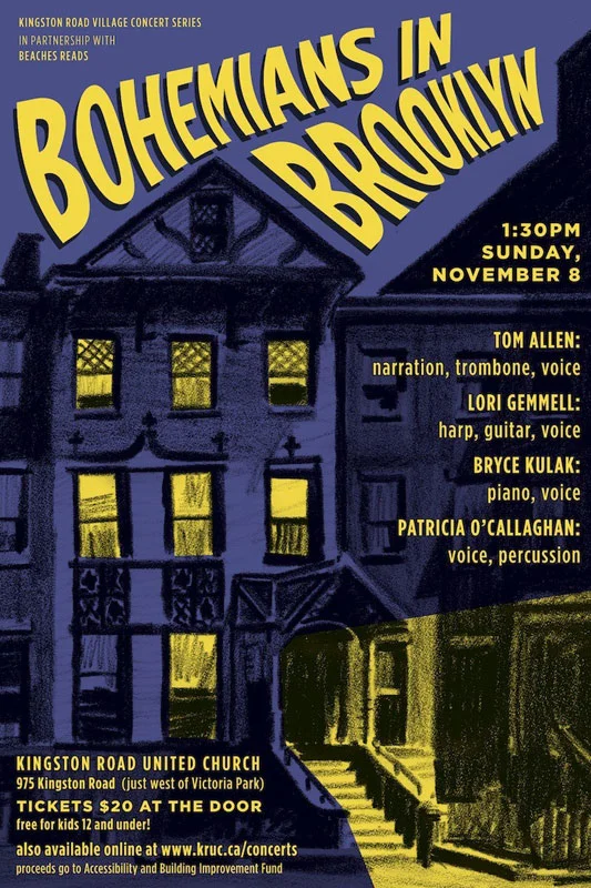 Featuring original songs by Bryce Kulak (piano/voice) and Tom Allen (narration/trombone/voice) along with music by composers Benjamin Britten, Leonard Bernstein, Kurt Weill, Paul Bowles and Colin McPhee. Completing the cast are Patricia O'Callaghan (percussion/voice) and Lori Gemmell (harp/guitar/voice).