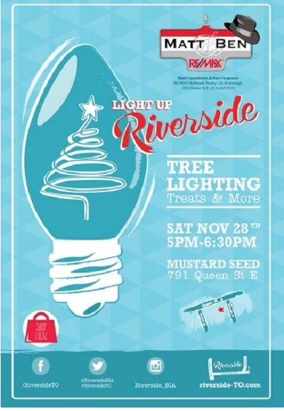 On November 28th you can Shop the Neighbourhood (#shopthehood) for great promotions … Plus enjoy Riverside’s free evening festivities at Light Up Riverside compliments of Matt & Ben Re/MAX