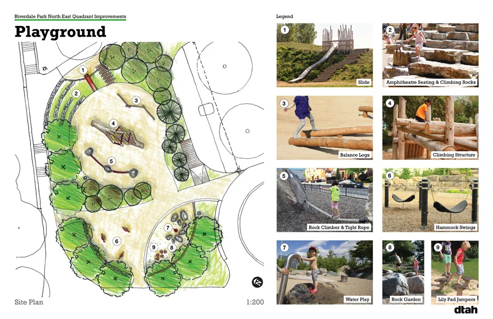 /The plan for the revitalization of Riverdale Park East’s outdoor recreational complex has now been finalized. A series of public consultations with the local community along with design input from DTAH, the landscape architectural firm overseeing the project, has resulted in a final plan for the northeast quadrant of the beloved local park.