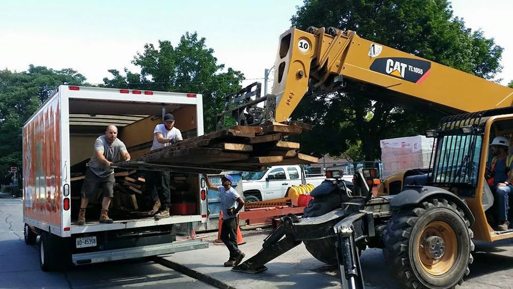 A deal was struck between Bread&Butter Designs and the construction firm overseeing redevelopment of the Broadview Hotel now owned by Streetcar Developments after owner Blake Shaver stopped by to chat with the site foreman. Shaver says he plans to salvage the floor joists to make reclaimed wood furniture.